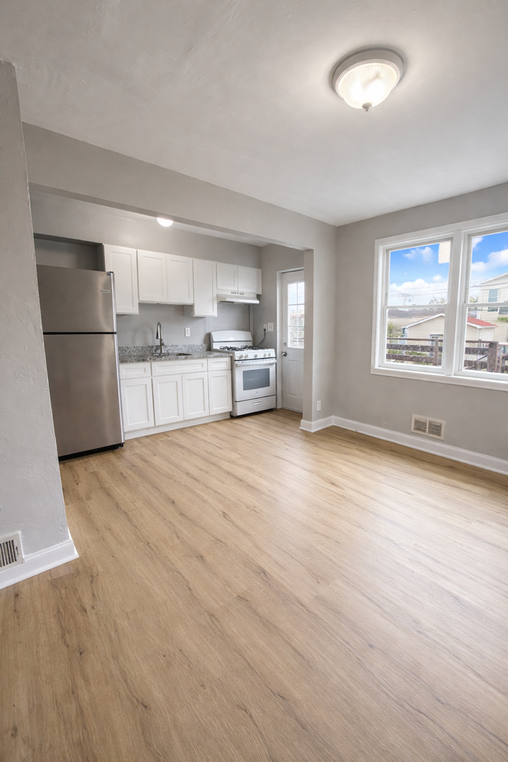 Welcome to this well-maintained Dundalk rowhome offering a functional layout, updated finishes, and versatile living space. The main level features an updated kitchen with stainless steel appliances, gas range, microwave, and refrigerator, opening into a bright living area with hardwood flooring and modern lighting.