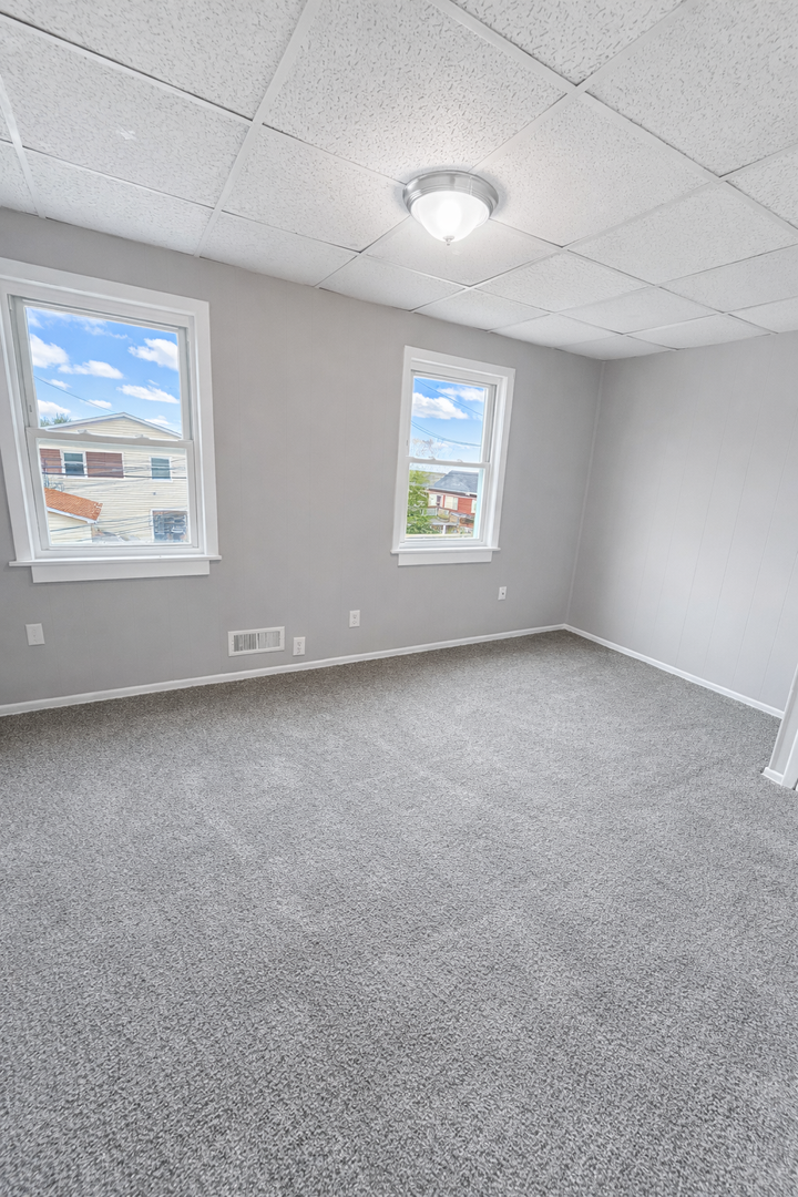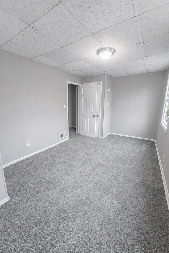 Upstairs, you’ll find three comfortable bedrooms with carpeting and ample closet space, along with a full bathroom. The finished basement provides additional flexible living space, perfect for a second living area, workspace, or storage, and includes a convenient half bathroom and in-unit washer and dryer.