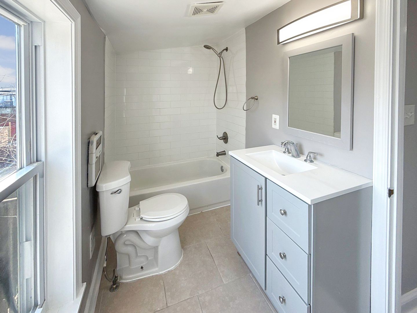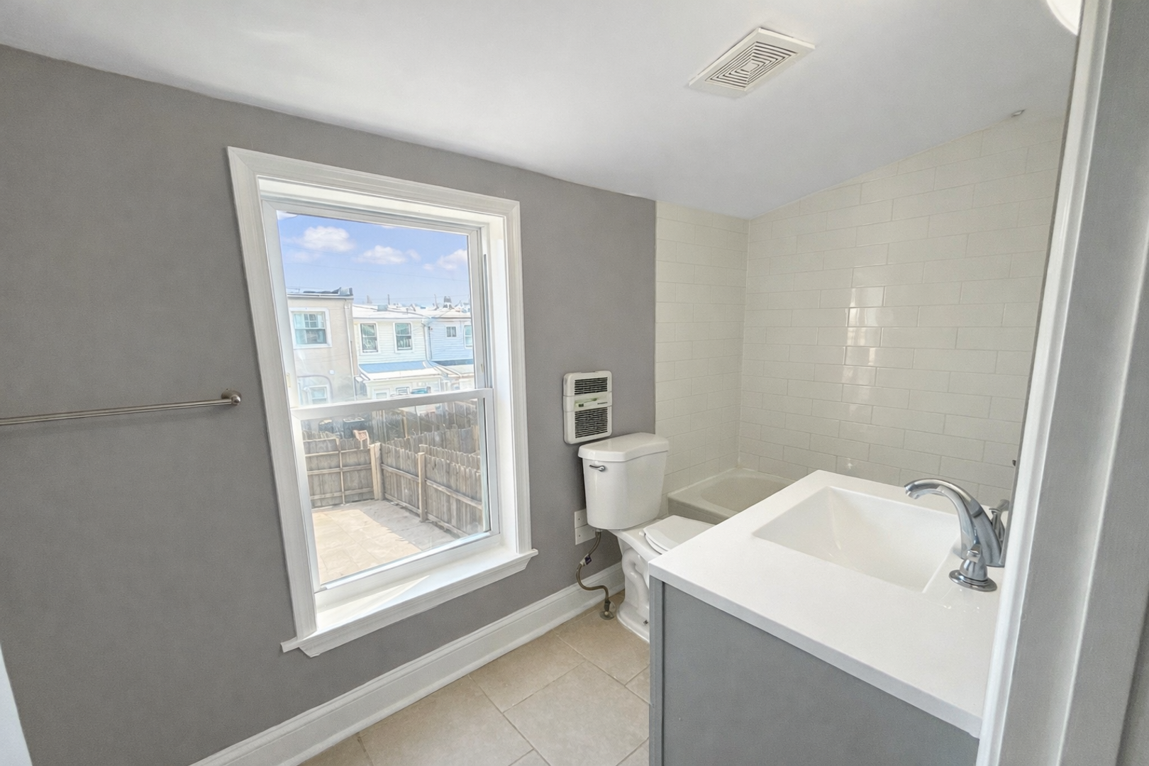 This renovated rowhome in Baltimore offers three bedrooms and 1.5 bathrooms with abundant natural light throughout. The updated kitchen features stainless steel appliances, a gas range, modern cabinetry and luxury vinyl plank flooring, while recessed lighting adds a contemporary touch. Updated bathrooms include white subway tile shower surrounds and vanities with storage. Comfort and convenience are provided by central heating, an in-unit washer and dryer, window-AC compatibility, and hardwood flooring in select areas. Additional storage is available in the unfinished basement, and the private fenced backyard with a concrete patio creates an outdoor patio area ideal for relaxation or entertaining. Street parking completes the offering.